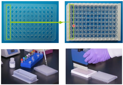 在向孔板加樣時,最重要的是要思考完成每一步驟需要多長時間,每一步驟的移動方向是什么。對于這種情況,預(yù)先將待檢樣品和酶標二抗加入低結(jié)合板內(nèi),然后再整個轉(zhuǎn)移到檢測孔板中,這樣能夠大幅減少將樣品添加到檢測板時造成的加樣誤差。