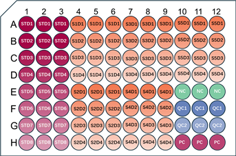 ? 在ELISA實驗之前應(yīng)該合理規(guī)劃孔板布局:優(yōu)化的孔板布局能夠監(jiān)測關(guān)鍵性能指標,并在出現(xiàn)問題時更快地進行問題排查。更多布板示例請點擊這里獲取。