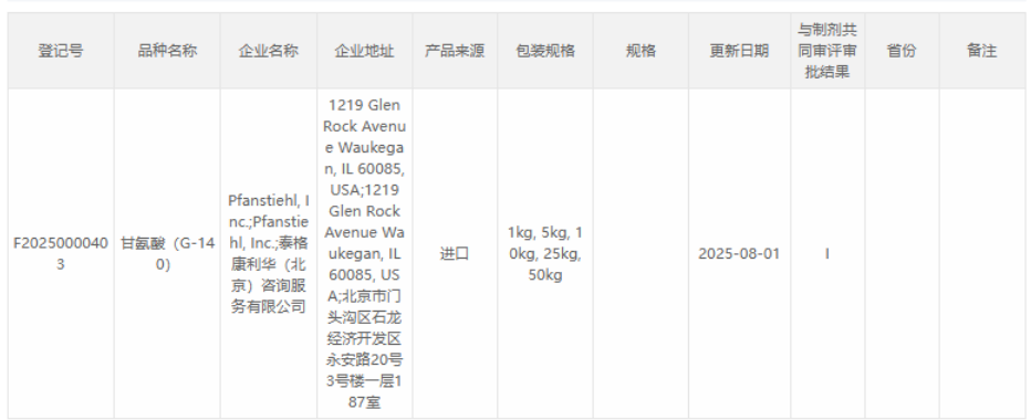 “熱烈祝賀Pfanstiehl的注射級(jí)甘氨酸Glycine(G-140)喜獲CDE登記號(hào)F20250000403, 這是Pfanstiehl產(chǎn)品獲得的第18個(gè)CDE登記號(hào)!”
